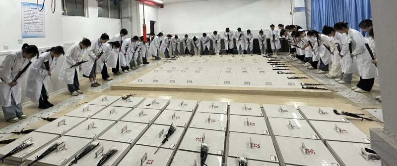 活动现场,全体师生列队肃立,100名师生高举右手、紧握拳头,重温医学生誓言。在解剖池旁,全体人员向“大体老师”鞠躬默哀、敬献鲜花,表达对遗体捐献者的敬意,告慰遗体捐献者们的大爱和无私。