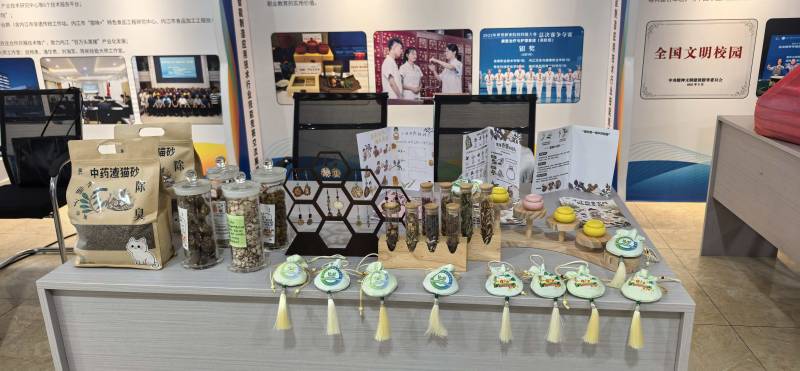 据悉,本次展演活动中,学院药学系精心准备了数十项融入中华传统优秀文化以及中医药文化的作品参展,包括中药猫砂、中草药压花、中药组方标本药材、紫艾膏、中药润肤金银花油等。下一步,学院将以此次展演为契机,打磨产品、拓展应用,充分发挥专业优势,在绿色创新领域持续发力,为助力地方产业发展贡献更多智慧力量。