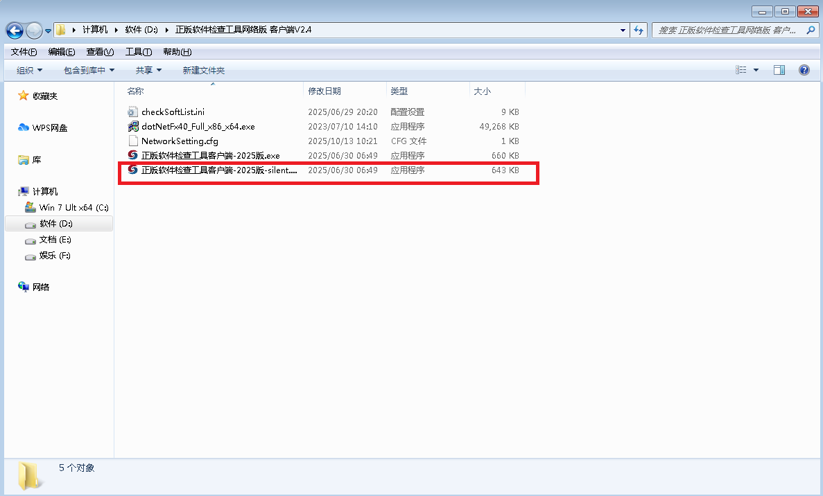 步骤2:解压打开正版软件检查工具安装包文件,双击“正版软件检查工具客户端-2025版-silent”应用程序,即可开始快速安装,无需人工配置;