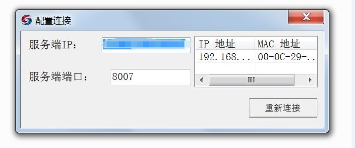 2.点击菜单项中的【已连接】/【未连接】,可以查看配置信息,用户禁止修改服务端IP和端口,确保客户端连接畅通。