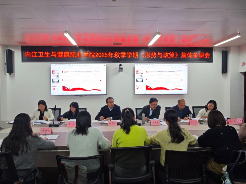 10月23日下午,学院在精诚楼四楼视频会议室召开2025年秋季学期“形势与政策”课程集体备课会。学院党委书记赵应文,党委副书记、院长李茂全,党委副书记、纪委书记罗苏,副院长夏蔚及其他党委委员,马克思主义学院全体教师参会。