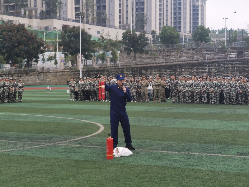 疏散集结完毕后,东兴区消防救援大队为全体人员作消防安全知识培训。宣讲员结合校园典型火灾案例,通过有奖竞答等互动方式,深入讲解了火灾预防、逃生自救、灭火器使用等关键知识,并现场指导师生代表进行灭火实操,增强了教学的实效性。