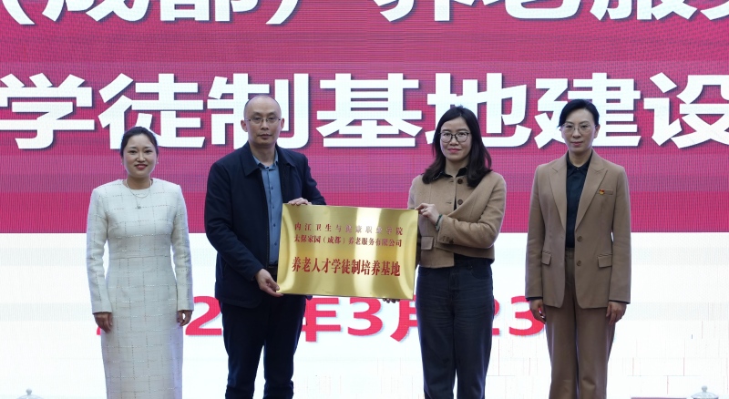 3月23日,学院与太保家园(成都)养老服务有限公司举行校企合作学徒制基地授牌仪式,学院副院长夏蔚,太保家园(成都)养老服务有限公司行政人事部经理熊蕾出席仪式,太保家园(成都)养老服务有限公司代表,学院有关处室、系部负责人,健康服务系(基础医学部)师生代表参加仪式。